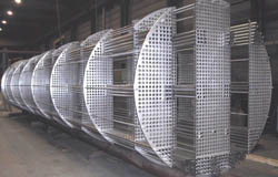 同时我单位还承揽凝汽器在保持外壳不动的情况下,增加换热面积的改造工程(将旧凝汽器内的端板、隔板等零部件全部拆除,根据需要增加的面积进行重新布管设计,重新加工端板、隔板等零部件)。